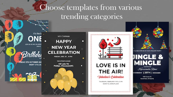 Invitation maker online app is your online solution for every event. Create 1st birthday invitation card, wedding invitation, engagement party invitation, baby shower invitation, save the date, etc with 1000+ templates. Using this perfect digital card maker, you can easily create invitation & greeting cards for any occasion.